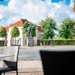 Das traditionsreiche Haus befindet sich im historischen Stadtkern von Rheinsberg, direkt gegenüber dem Schloss.